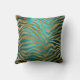 Tropical African Teal Gold Glam Zebra Animal Skin Cushion