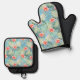 Tropical Aloha Hibiscus Floral Oven Mitt & Pot Holder Set