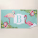 Tropical Aqua and Pink Flamingo Custom Monogram Beach Towel