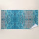 Rippling aqua blue water with a hint of coral and peach, Feel the Tropical Vibes of this naturally beautiful beach towel of aqua and blue in a Boho chic design.