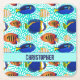 Colourful coaster printed with a hand drawn pattern of tropical aquaruim reef fish in bright orange and blue