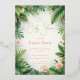 Celebrate in style with this tropical-themed baby shower invitation, featuring lush green leaves and pink flowers. Personalise it with your event details.