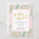 Elegant and chic tropical baby shower invitations. Featuring green palm fronds, pink accents and a faux gold "Baby Shower" text with pineapples. Please note: metallic elements will print to look like gold foil, but the invitations will contain no actual gold foil, glitter, or metallic ink.