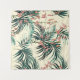 Tropical background with jungle plants. Seamless tropical pattern with dark green palm leaves and tropical orange lilies flowers on yellow background.