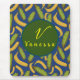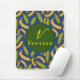 Tropical Banana Blue Leaf Monogram Script Mouse Pad