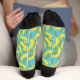 Have you ever seen socks that are more bananas? It's a dog! It's a banana! It's dogs made out of bananas! These yellow dachshund style dogs made out of fruit are accompanied by green palm leaves and set against a bright blue background.
