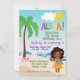 Tropical beach Luau birthday party invitation, with cute hula girls, palm tree and beach scene. This cute invitation is easy to customise and will complete your summer theme party and is great for kids and adults.