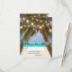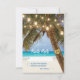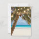 Destination wedding response cards featuring a tropical paradise beach setting with a lush palm tree, your initials engraved in a carved heart and twinkle string lights.