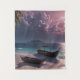 Peaceful tropical beach at sunset with small boats on the shore, lovely pink clouds and multiple full moons.