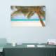 Tropical beach background scene with leaning palm tree, sand, and aqua blue ocean. You can add text for an event, or this can be used for a photo booth backdrop, prop for a luau or tiki party, or any other purpose. Also fun as a backdrop for videoconference, livestreaming, or a virtual celebration. This is made from an artistically rendered photograph made to look more like a painting.