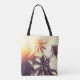 Tropical beach background with palm trees silhouet tote bag