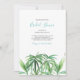 This beach bridal shower invitation features the bride to be's name set in a stylish handwritten script typography with event details in a classic charcoal grey serif font on a crisp white background. A replica of my original watercolor tropical greenery palm leaves in shades of green adorns the front. The invite card reverses to a complimentary sea glass turquoise blue colour. A coastal chic yet elegant choice for summer luau brunch and bubbly or luncheon bridal showers. To see more island style watercolor bridal shower ideas by Victoria grigaliunas visit DoTellABelle on Zazzle.