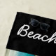 Scenic ladies beach towel design with coastal tropical image of a beach coastline with the ocean, sand, and palm tree in the background and phrase Beach Girl that lets everyone know you cherish your beach.