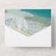 Invite guests to your upcoming tropics theme nuptials with the Tropical Beach Destination Wedding All in One Invitation. The unique design of this marriage invite lets the guests tear off the rsvp postcard for easy mailing. Personalise it with your own wedding ceremony and reception details and wedding couple's return address. This casual beachy wedding invitation features a nature photograph of turquoise blue ocean waves crashing on a sandy beach with a white palm tree and teal swirls adorning the corner.