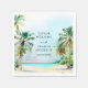This elegant and beautiful watercolor wedding napkin features a beach, blue sky and palm trees. The text combines handwritten script and sans serif fonts for a stylish and modern look. This is perfect for a summer beach or tropical destination wedding.