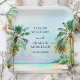 This elegant and beautiful watercolor wedding plate features a beach, blue sky and palm trees. The text combines handwritten script and sans serif fonts for a stylish and modern look. This is perfect for a summer beach or tropical destination wedding.