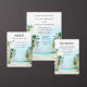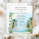 This elegant and beautiful watercolor wedding postcard features a beach, blue sky and palm trees. The text combines handwritten script and sans serif fonts for a stylish and modern look. This is perfect for a summer beach or tropical destination wedding.