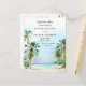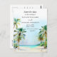 This elegant and beautiful watercolor save the date invitation features a beach, blue sky and palm trees. The text combines handwritten script and sans serif fonts for a stylish and modern look. This is perfect for a summer beach or tropical destination wedding.