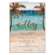 A beautiful folded card wedding invitation with a tropical beach and palm trees design, with string lights. Customize the front and add your own message inside. Available on many other products in my shop in this beach design.