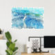 Tropical Beach in Teal Aqua Turquoise Blue with Wh Poster