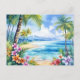 Send a piece of paradise with this stunning tropical beach postcard! Featuring vibrant palm trees, colourful tropical flowers, and a serene ocean view, this watercolor-style artwork captures the perfect island escape. Ideal for vacation keepsakes, travel gifts, or adding a sunny touch to your correspondence.