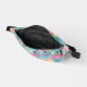 Here's a bright, colourful, and fun summer fanny pack. Images in the pattern are centred around a pink flamingo float and a tangerine orange and pink beach umbrella. Other items include ice cream bars, orange slices, a pineapple, beach bag and beach hat. Everything is placed on a teal blue background.