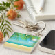Picture yourself on the beach with this design featuring a tropical beach scene complete with palm trees, sand and surf.