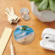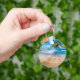 Keychain shown with a photo print of a beautiful tropical beach scene.
