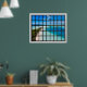 Beautiful faux lattice window view tropical beach scene, for a windowless office. Very realistic 3d beach wall art, optical illusion poster that would look great on an office or study wall.