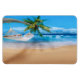 Magnet shown with a photo print of a beautiful tropical beach scene.