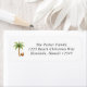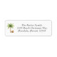 Modern Christmas return address labels featuring a simple and fun design with a palm tree and a coconut drink.