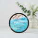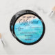 An elegant, music themed wedding invitation template in the shape of a vinyl record, that features a bright tropical beach background in watercolor, with the title "Eat, Sing & Be Married". An elegant, fun choice for musicians or music lovers and want a more informal, but elegant, wedding celebration. Perfect for lovers of vintage records, vintage LP labels and 70's style script fonts. It includes a photo template on the back, as well as a QR code. An all in one wedding invitation with a unique shape.