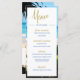 Tropical beach and ocean seaside Modern Elegant Wedding Menu design.