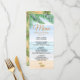 This menu card depicts a romantic scene of green palms, ocean waves and two starfish on a sandy beach. The card reverses to a warm beige with bright green palm leaves. The perfect menu card for your beach wedding. You can click the customise link to add your own menu details. This is part of a matching wedding suite that can be fully personalised.