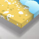 Tropical beach, ocean with surfer wrapped canvas print, featuring a tropical landscape. There are palm trees and a starfish on the sand beach, a surfer on the waves and a whimsical sun made of circles.