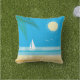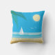 This fun outdoor cushion is decorated with a tropical beach scene accented with starfish, seagulls, a sailboat and palm leaves on a bright blue sky background, making it the perfect summertime accessory for boat, beach house, pool house, cottage, patio, deck or pool area.