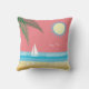 This fun cushion is decorated with a tropical beach scene accented with starfish, seagulls, a sailboat and palm leaves on a bright coral sky background, making it the perfect summertime accessory for the living room, bedroom, cottage, patio, deck or pool area.