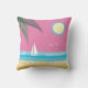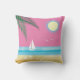 This fun cushion is decorated with a tropical beach scene accented with starfish, seagulls, a sailboat and palm leaves on a pink sky background, making it the perfect summertime accessory for the living room, bedroom, cottage, patio, deck or pool area.