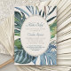 Invite your guests to paradise for a day with this elegant tropical palm leaves design. Featuring a spray of assorted tropical leaves in serene blues and greens and a stylised rattan pattern on the back, this design embodies a breezy day underneath the palm trees. Perfect for your casual beach affair or dressy brunch. Shop the collection today for matching stationery, and get away to the perfect day!