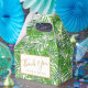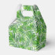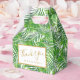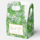 Lush tropical greenery and palm leaves with elegant gold personalised name and thank you script text favour box perfect for a modern beach wedding, destination wedding or tropical shower and beach party or mitzvah treats.