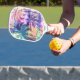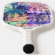Catch the pickleball wave with this super cool paddle featuring a tropical palm pattern set against a colourful abstract background. Add your name, phone number or custom text to the bottom edge so you'll never lose your paddle again!! Whether you're heading out for rec or competitive play, this unique, one of a kind custom paddle will definitely become your favourite - and you're sure to get compliments. A perfect gift for beginners and experienced players alike - get two and match with your pickleball partner!!
