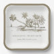 Tropical Beach Palm Tree Sketch Pale Gold Wedding Paper Plate