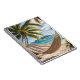 Notebook featuring a tropical beach with palm trees and hammock. Great for travel notes.