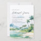 This elegant rehearsal dinner invitation features tropical sandy beach with palm trees and mountains in watercolor. Personalise it for your needs. You can find matching products at my store.