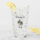Tropical beach drinking glass with a simple palm trees design. Elegant Black typography lettering can be customised with your own text. A summer inspired accessory for your entertaining.