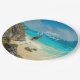 Tropical Beach Paradise with Palm Trees Birthday Paper Plate