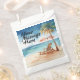 Step into a world of tropical paradise with our Tropical Beach Party Favour Bag, the perfect herald for a summer celebration. Crafted with care, this item features a breathtaking watercolor beach and palms set against a dreamy backdrop of soft greens and blues, evoking the whimsy and wonder of a vast sea. The delicate artistry of the design transports each guest to a realm tropical paradise, setting the stage for an unforgettable adventure.