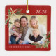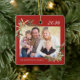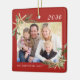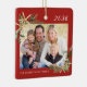 This beach inspired Christmas ornament with festive red background and white text makes a great annual holiday keepsake, easily customized for a unique gift with the photo and text templates. Holiday watercolor sprigs of holly, pine, and starfish in two corners frame the photo on both sides.
