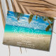 Tropical beach wedding save the dates for your destination beach wedding. Customise with your names, wedding date and wedding location. Card reverses to photo on the back.