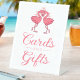 Guide guests with a burst of tropical joy. This pink flamingo “Cards & Gifts” wedding sign features two lovebirds forming a heart with sweet pink accents, perfect for beach ceremonies, summer Hawaiian luaus, and romantic ocean destinations. Set it by your gift table to add playful elegance, summer love vibes, and a touch of paradise to your celebration.